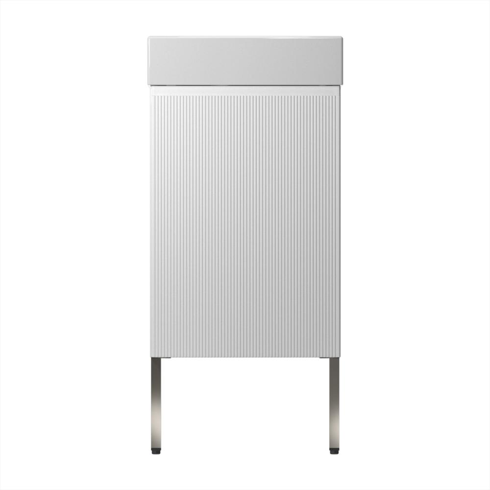 Настенная тумба с напольными опорами предназначена для установки с правосторонней или левосторонней раковиной и является емким местом для хранения текстиля, моющих средств и гигиенических принадлежностей. Благодаря компактной конструкции изделие приобретает визуальную легкость, окружающее пространство не перегружено и вокруг мебели остается достаточно свободного места, что облегчает процесс уборки.