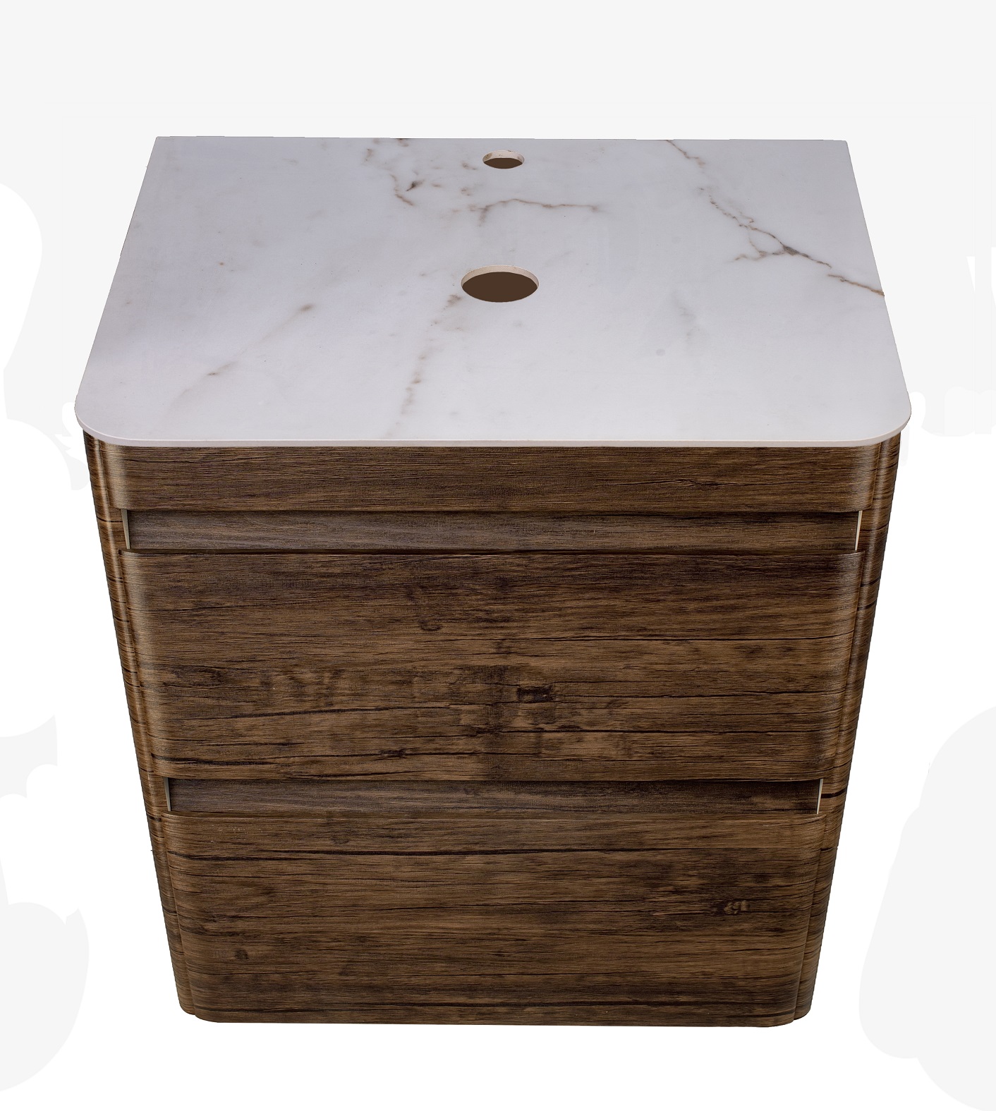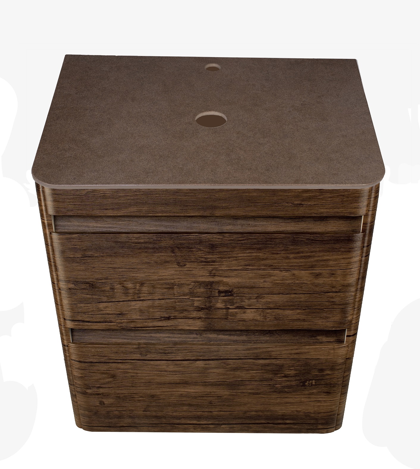 тумба подвесная "Атлантика 60" люкс - 600x420x620 мм (ШхГхВ), материал - мдф, монтаж - подвесной, столешница из керамогранита (3 цвета на выбор), накладная раковина приобретается отдельно, цвет - старое дерево