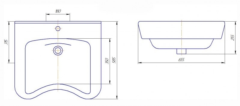 - наличие защитной грани на задней стенке умывальника препятствует стеканию воды