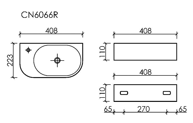 Умывальник подвесной прямоугольный (чаша справа, отверстие под смеситель слева) Element 409*224*110мм CN6066R Ceramica Nova