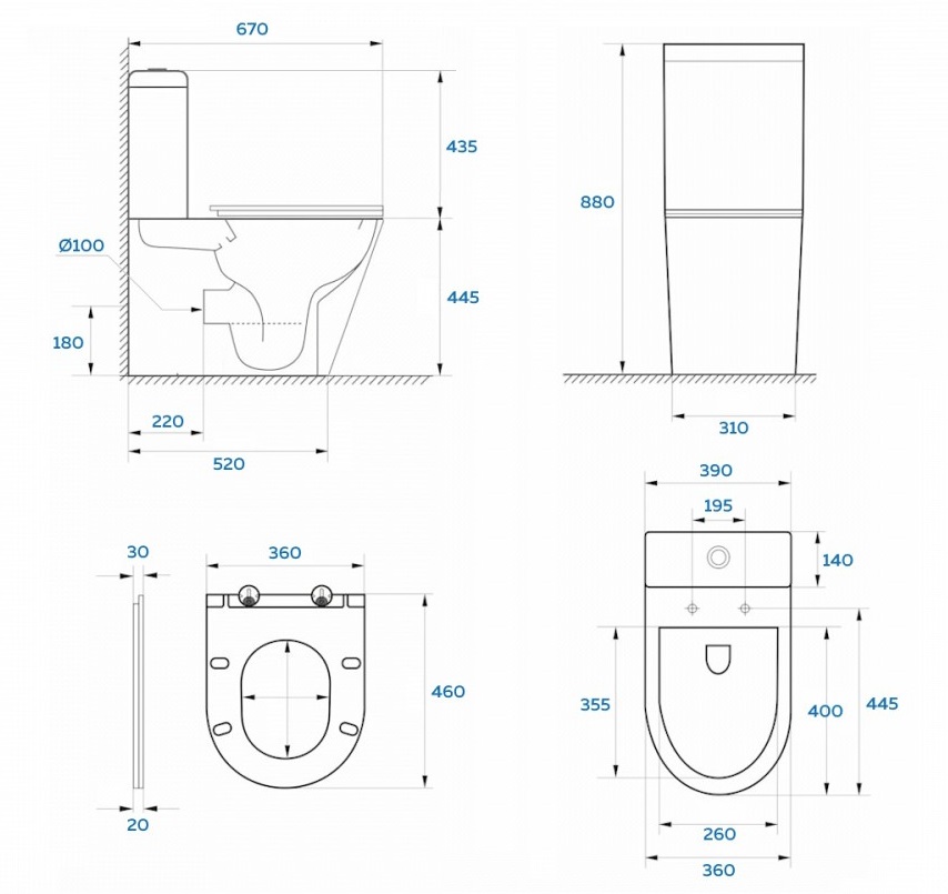Организация смывающего потока - вихревая, что обеспечивает высокую эффективность смыва и экономию воды. Горизонтальный выпуск обеспечивает удобный монтажа, а объем смывного бачка составляет 3/6 литров. Подвод воды находится снизу.