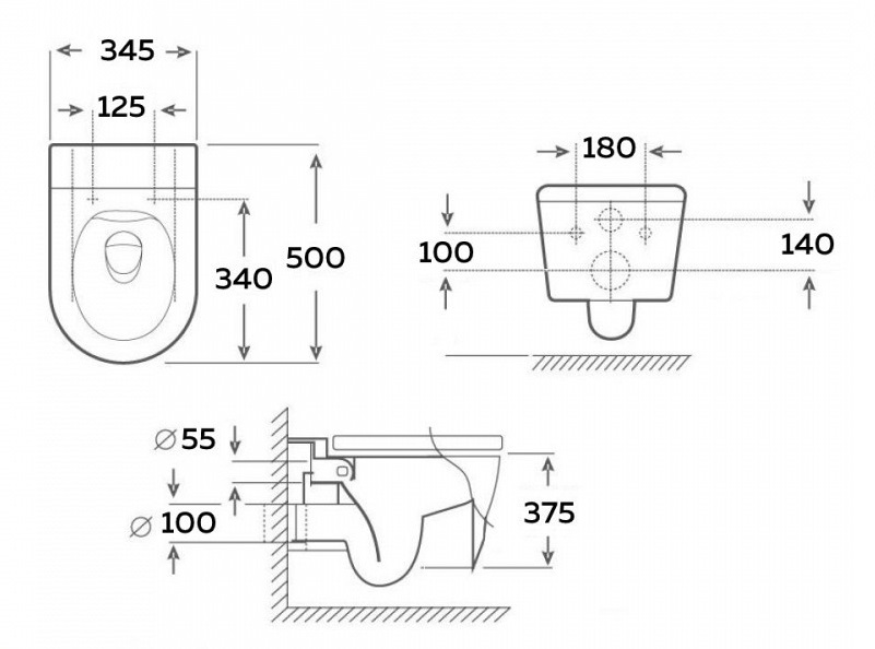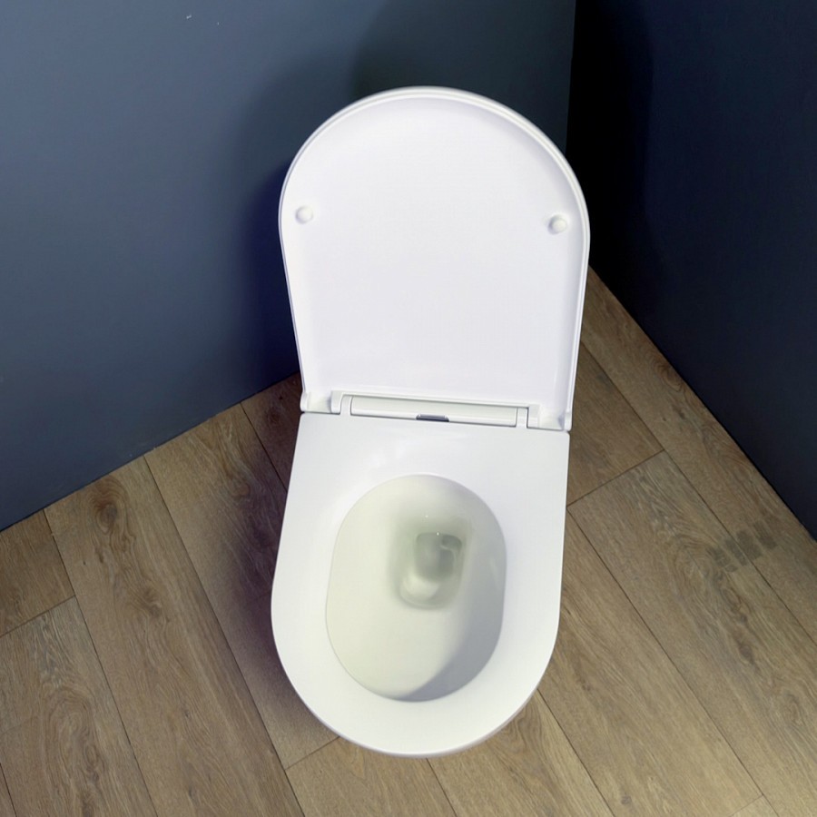 Чаша унитаза для установки на инсталляцию, жесткая крышка-сиденье из дюропласта с механизмом Soft Close, безободковая конструкция чаши, габариты - 500х345х375 (410) мм (ГхШхВ)