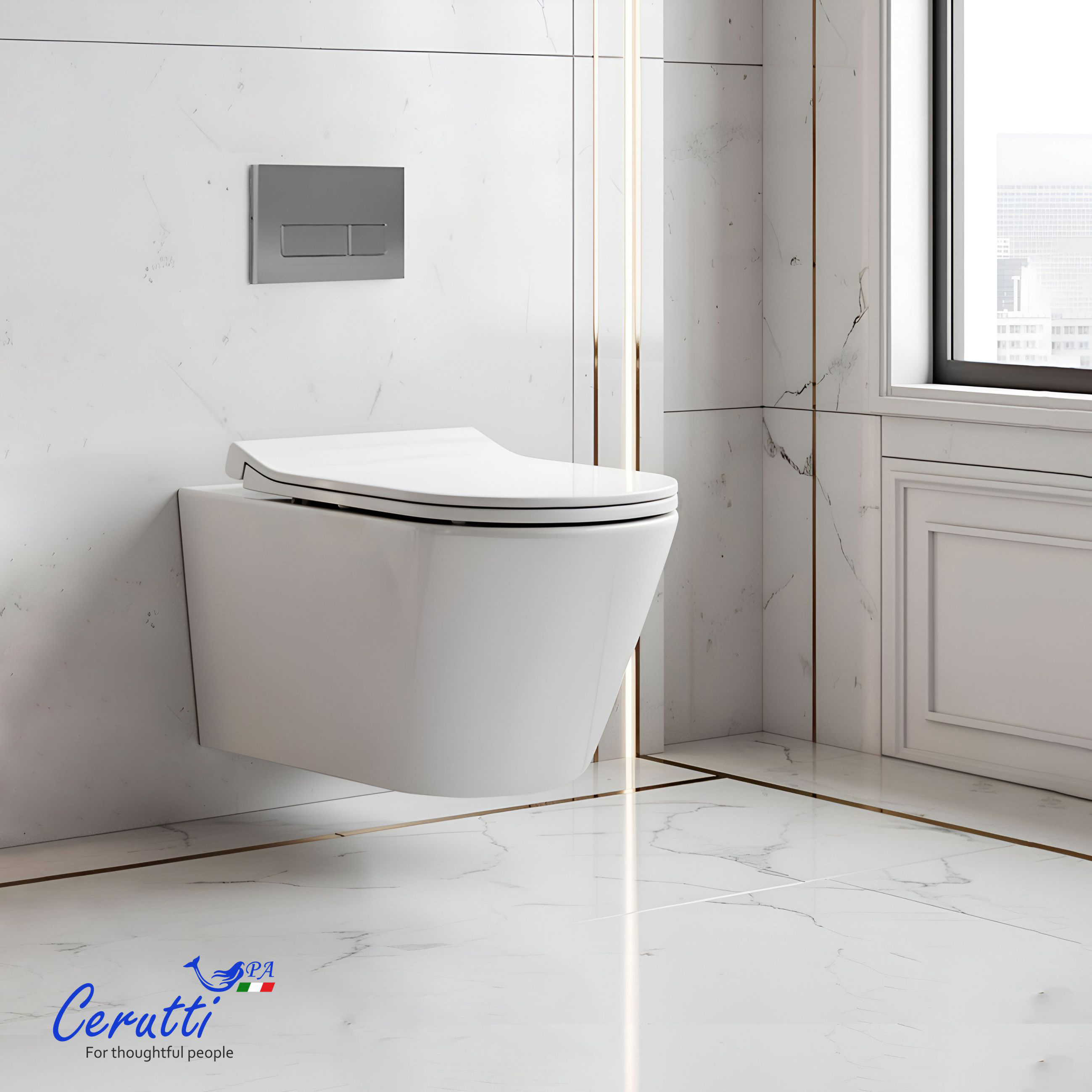 Особенность подвесных унитазов Cerutti SPA в эргономичном использовании пространства. Модель подвесных унитазов можно разместить в уборной любого размера. Также преимуществом выбора такого типа унитаза является отсутствие труднодоступных мест для уборки/мытья пола.