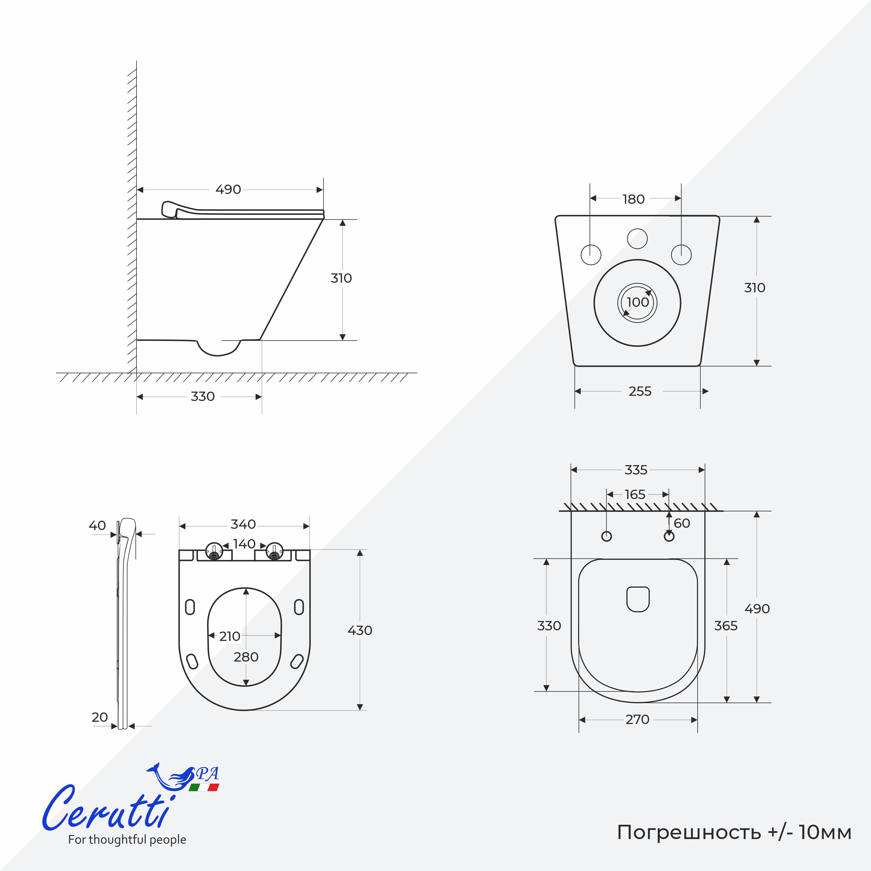 • Подвесная конструкция (490х340х360 мм): Элегантный и компактный дизайн, который визуально расширяет пространство ванной комнаты. Отсутствие опоры на пол значительно упрощает уборку, делая вашу ванную сияющей чистотой без лишних усилий.