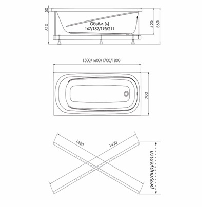 Ванна акриловая MARONI Лайт 180х70 Щ0000063861