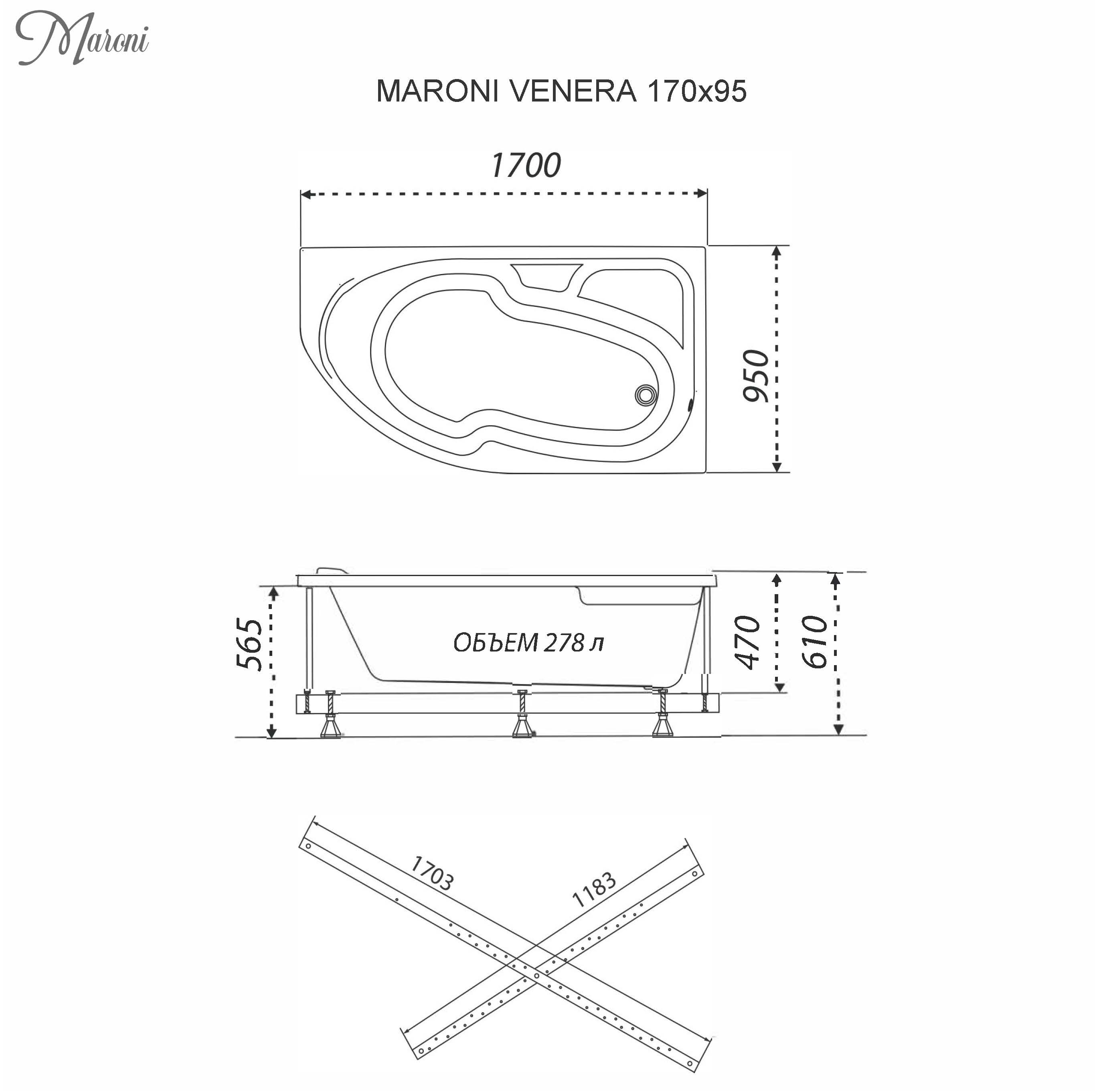 Ванна акриловая MARONI Venera R 170x95 Щ0000065370
