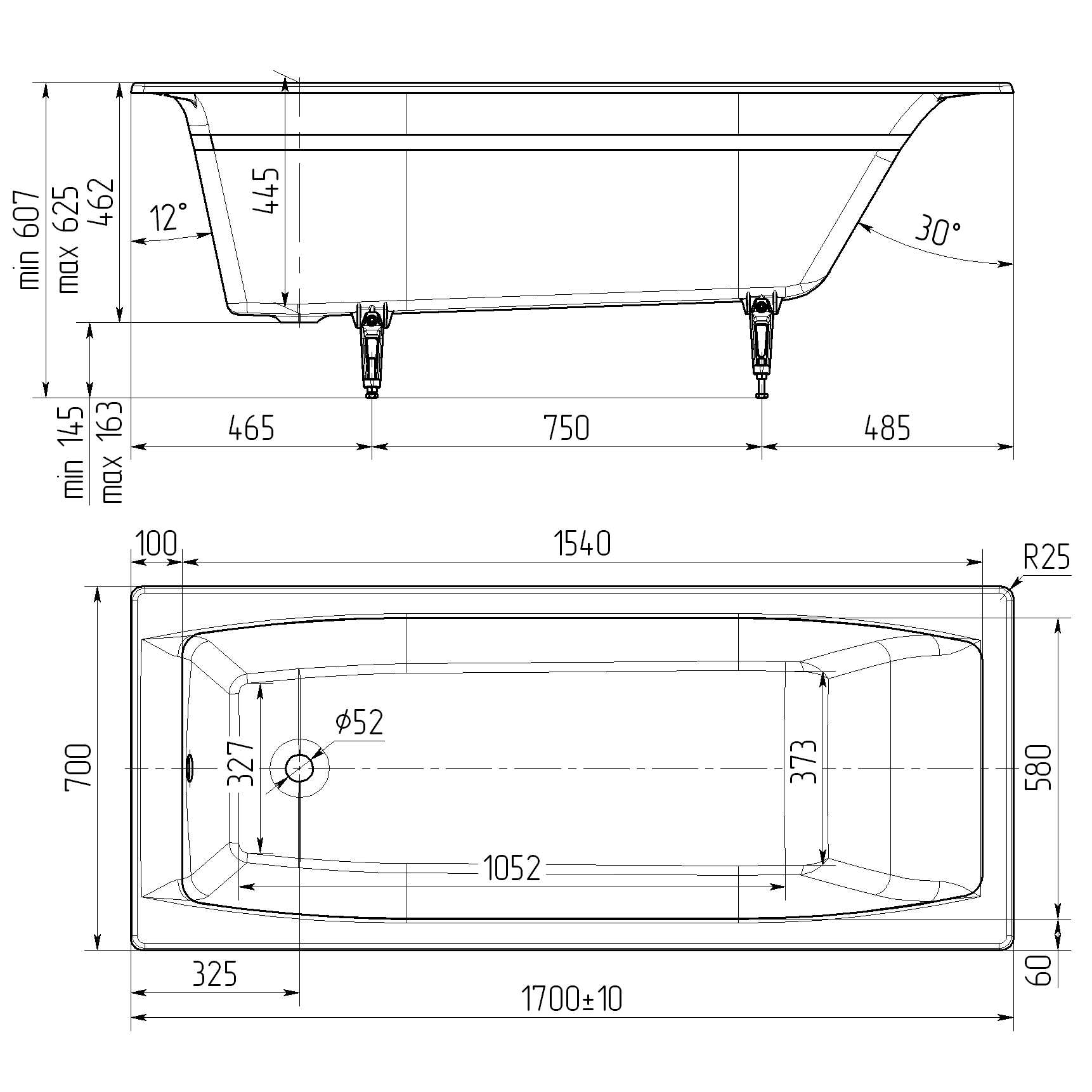 Сорт - 1 (высший), размер - 170х70х46 см (длина/ширина/глубина), ножки приобретаются отдельно, производитель - Универсал (Новокузнецк)