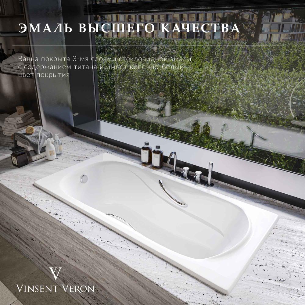 Ванна чугунная Vinsent Veron Haiti 170x80x42 с хромированнами ручками VHT1708042H/VH008CH