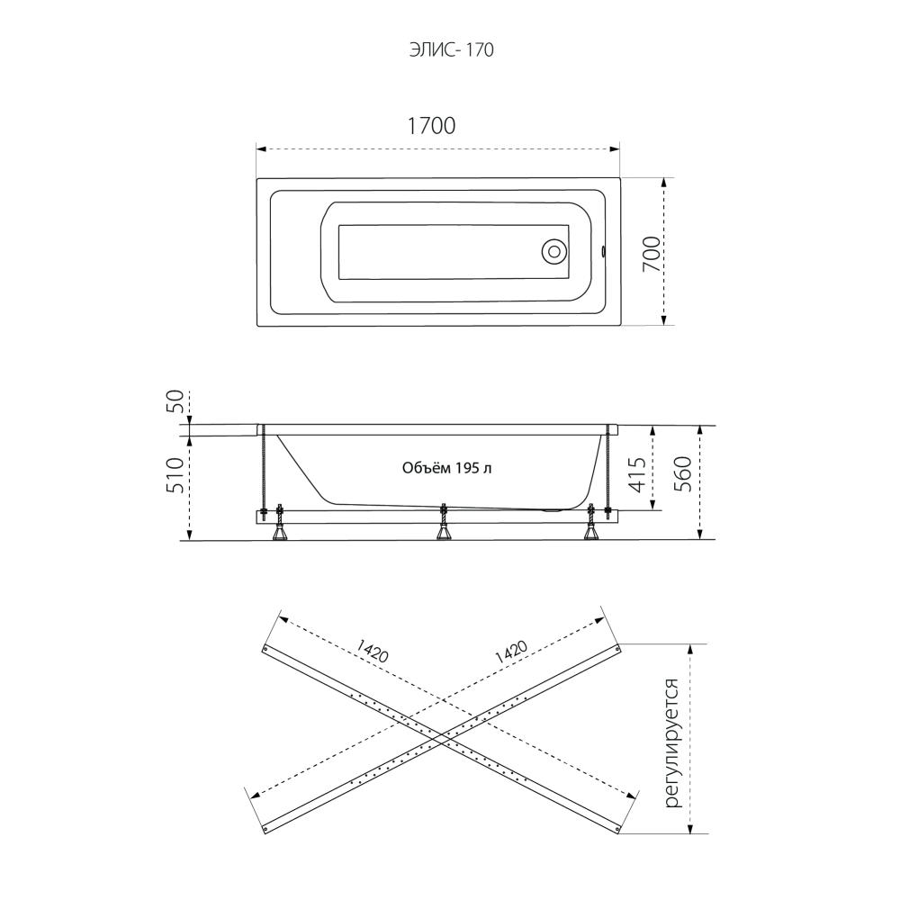 Установочный комплект для прямоугольных ванн шириной 70-75см (шпилька 160мм) Щ0000029976 Тритон |