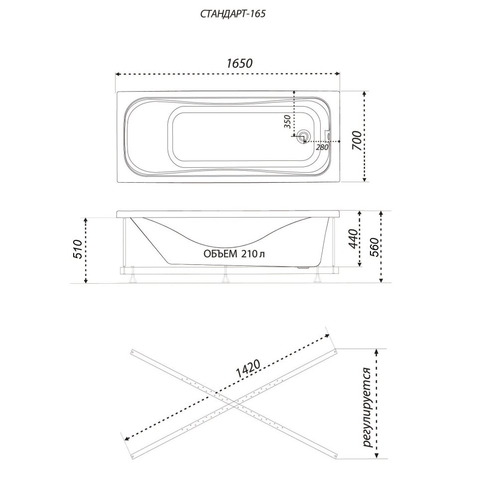 Ванна Стандарт 165 Экстра Щ0000017402 Тритон
