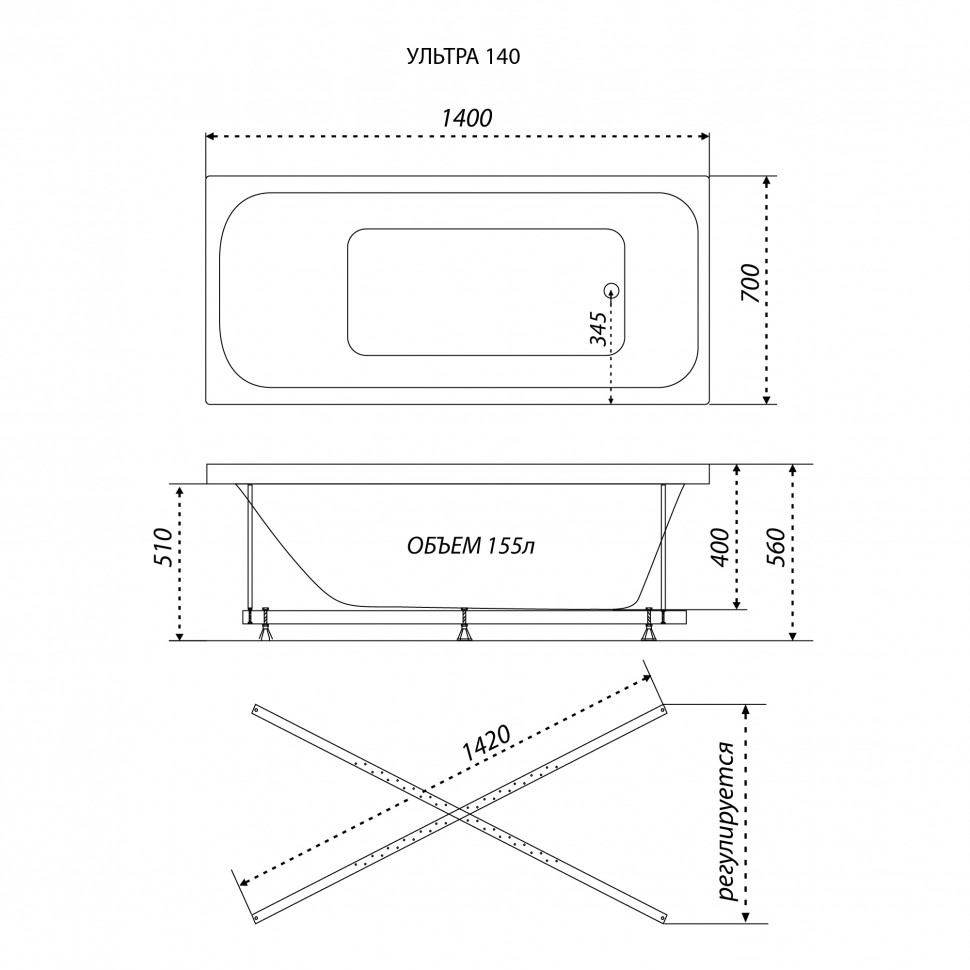 Установочный комплект для прямоугольных ванн шириной 70-75см (шпилька 160мм) Щ0000029976 Тритон |