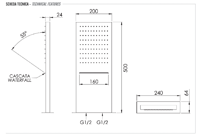Верхний душ настенный 50x20 см Remer 350SSCAX в наличии на складе