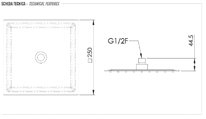 Верхний душ с шарнирным соединением 25 см Remer 357UFS25NOX, черный матовый