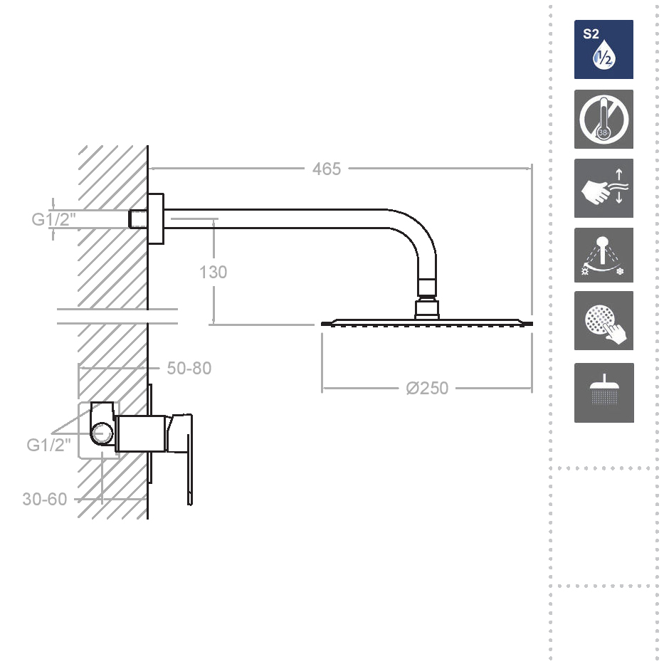 * S2/C2 - в смесителе применена система двухступенчатого открытия воды, позволяющая сохранять до 50% излишне потребляемой воды.