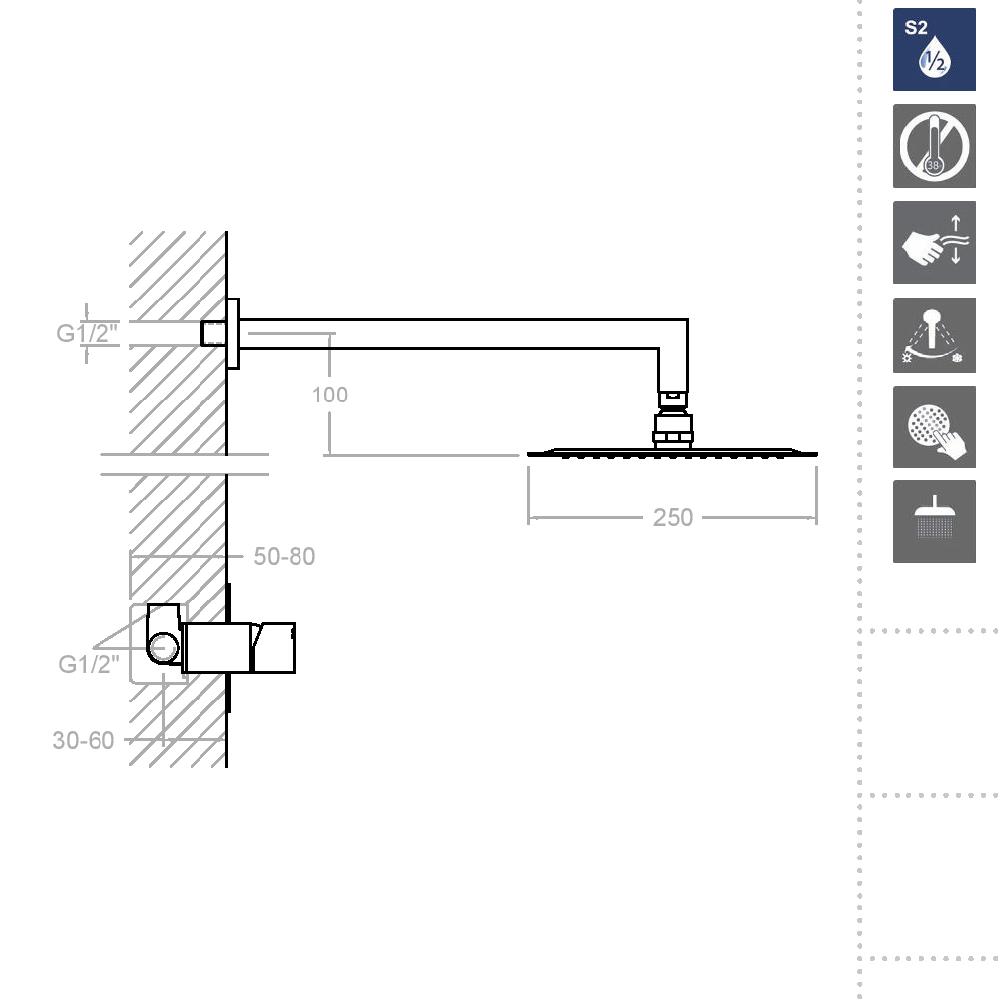 Встраиваемая душевая система с тропическим душем KUATRO K4718012 Ramon Soler