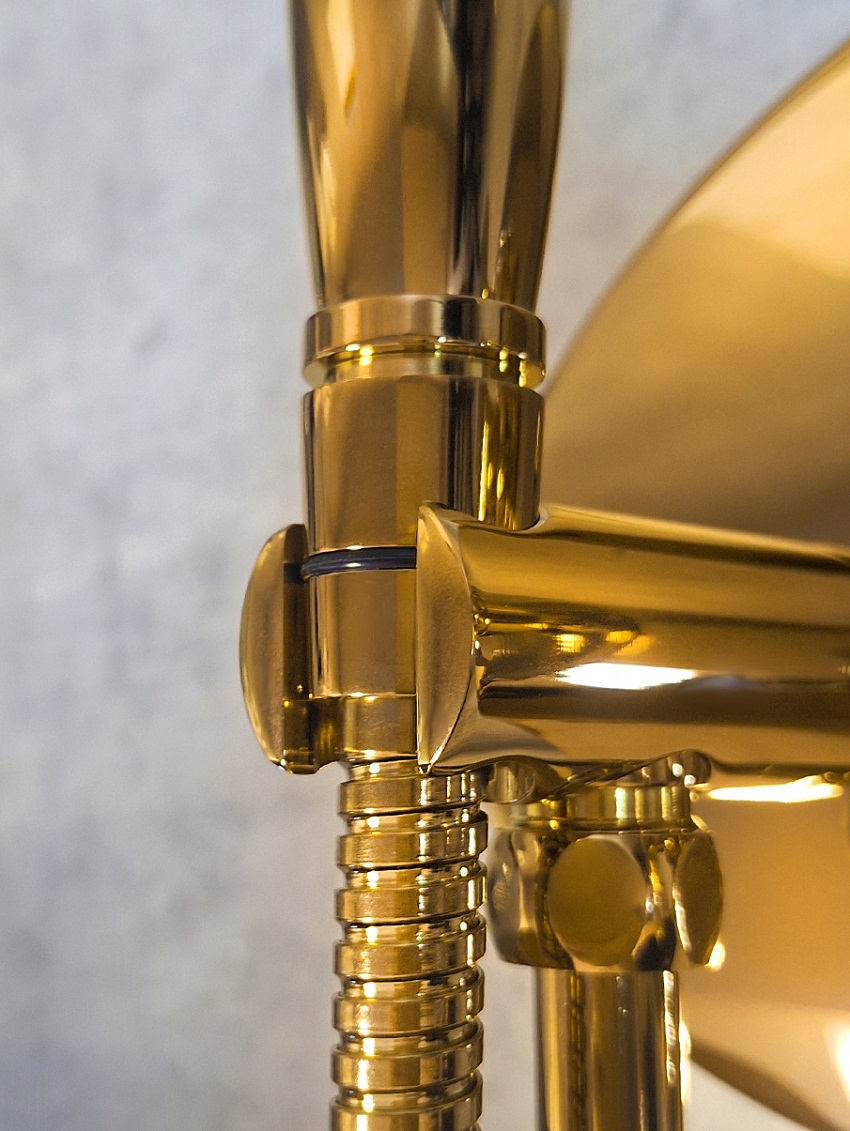 Дополнительные свойства: PVD покрытие, латунная гигиеническая лейка, керамический картридж Комплектация: встраиваемая часть, смеситель, штуцер/держатель, гигиеническая лейка, гибкий металлический шланг, декоративная панель