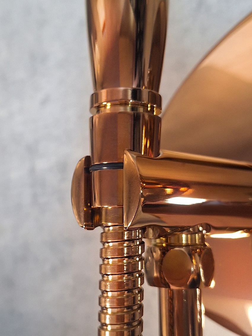 Дополнительные свойства: PVD покрытие, латунная гигиеническая лейка, керамический картридж Комплектация: встраиваемая часть, смеситель, штуцер/держатель, гигиеническая лейка, гибкий металлический шланг, декоративная панель