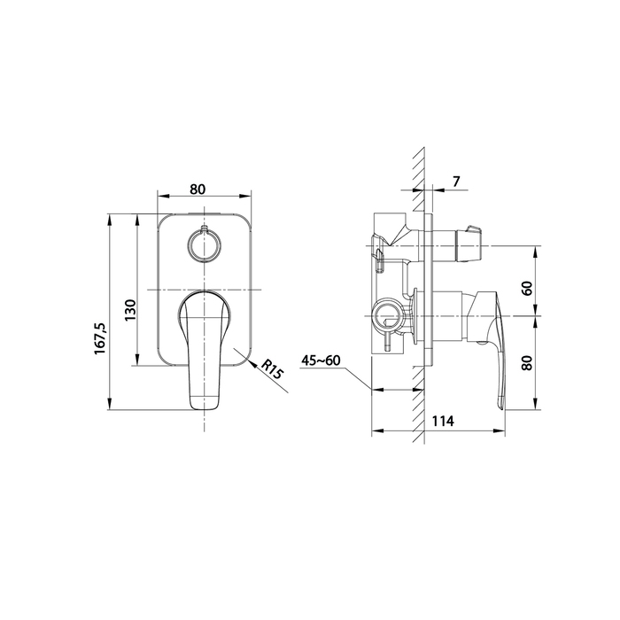 Встраиваемый смеситель Ray в трендовом черном цвете – это универсальный дизайн, который выглядит свежо, стильно и подойдет к любому современному интерьеру. Подключается к двум душевым аксессуарам: душевому гарнитуру, верхней или ручной лейке, настенному изливу – выбирайте удобную комбинацию сами. Переключение воды осуществляется керамическим дивертором.