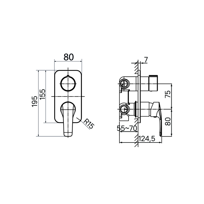 Встраиваемый смеситель Ray – комбинация современных технологий и лаконичного современного дизайна. Предназначен для подключения трех душевых аксессуаров на ваш выбор и подойдет для душевого ограждения или ванны.