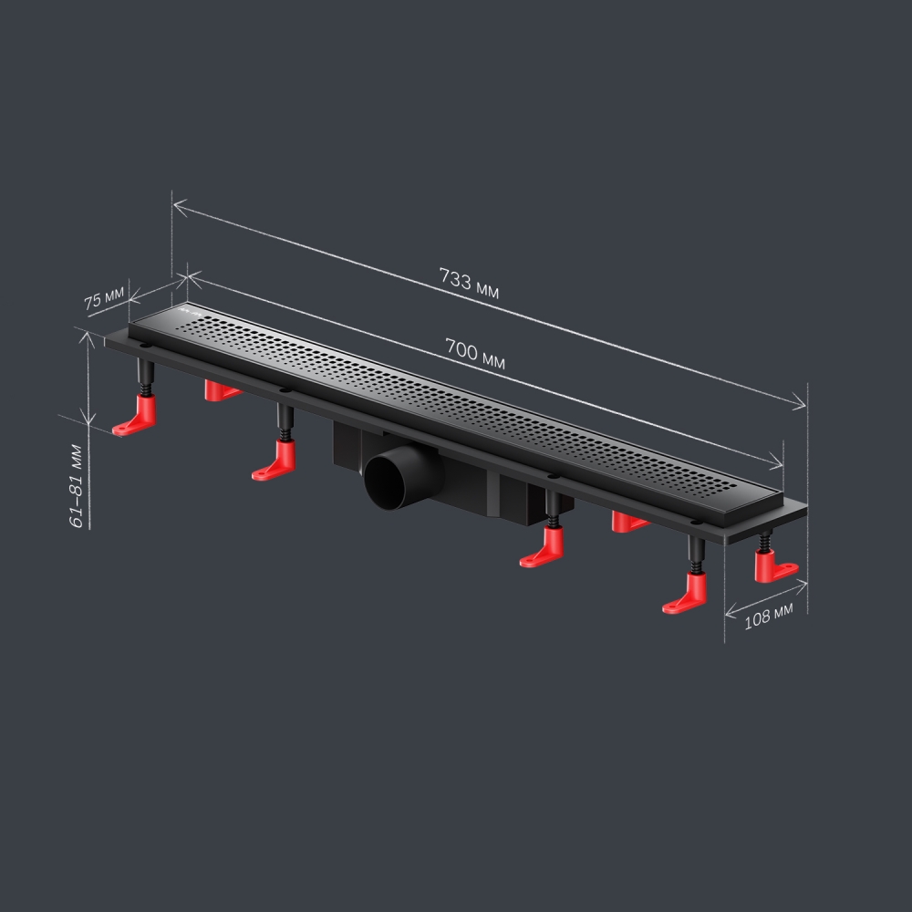 W02SC-P11-070-01BM PrimeFlow Трап для душа линейный универс затвор Cut Gradient 70см цвет черн мат Am.Pm