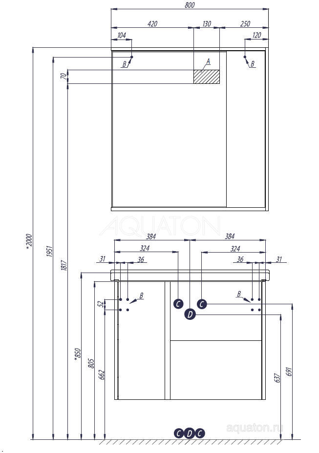 Зеркальный шкаф AQUATON Стоун 80 белый 1A228302SX010