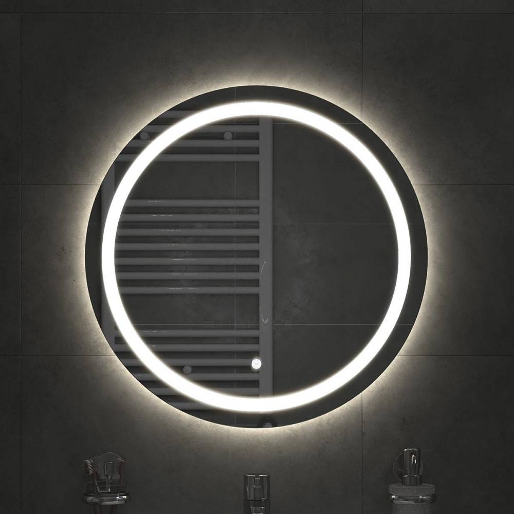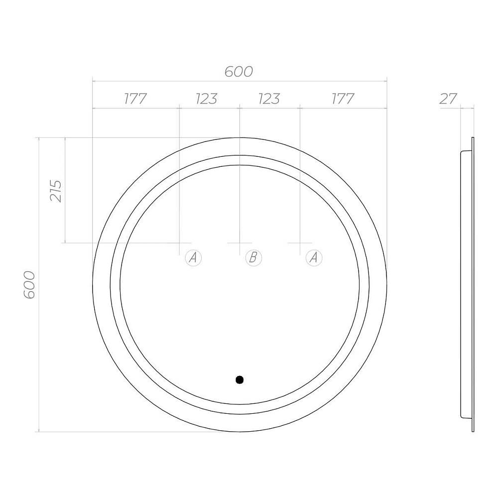 зеркало с фоновой светодиодной подсветкой по периметру, сенсорный выключатель, габариты - 600*600*27 мм (ШхВхГ), зеркальное полотно с влагостойкой амальгамой на основе серебра, корпус - ABS-пластик