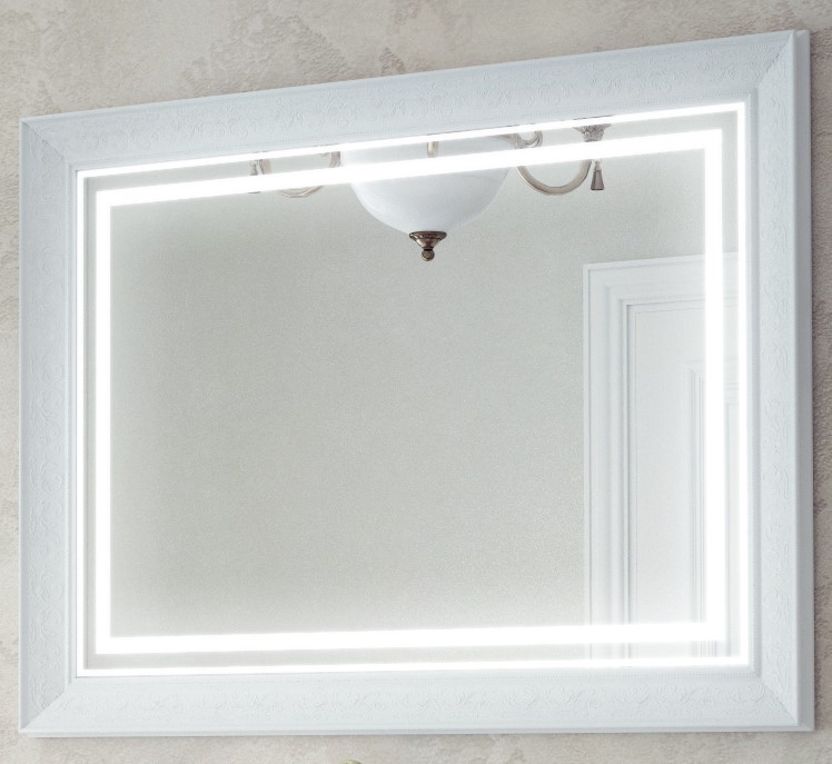 Коллекция "Классика" - это роскошный набор разнообразных предметов мебели для ванной комнаты в классическом стиле. Дополнительный эффект, современность и актуальность коллекции придают зеркала с LED подсветкой, которые можно подобрать к любой тумбе. Зеркало LED "Классика 1050*800", сенсор представляет собой зеркало с LED подсветкой в багетной раме. Сзади багетная рама и электрические компоненты закрыты крышкой из ДВП. Крепится на стену зеркало при помощи мебельных подвесов. Интенсивность освещения регулируется сенсорным выключателем. Мощность блока питания - 40 Вт.