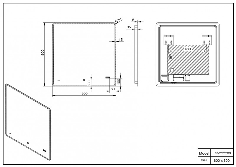 Зеркало ESBANO ES-2073 ТDS 80x80 ESBANO